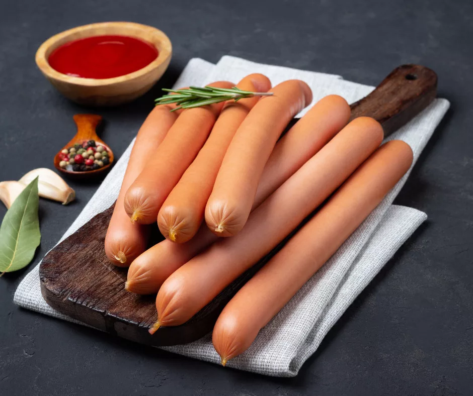 Frankfurti virsli vákuumcsomagolt - sertéshúsból készült, hőkezelt, emészthető műbélbe töltött húskészítmény.